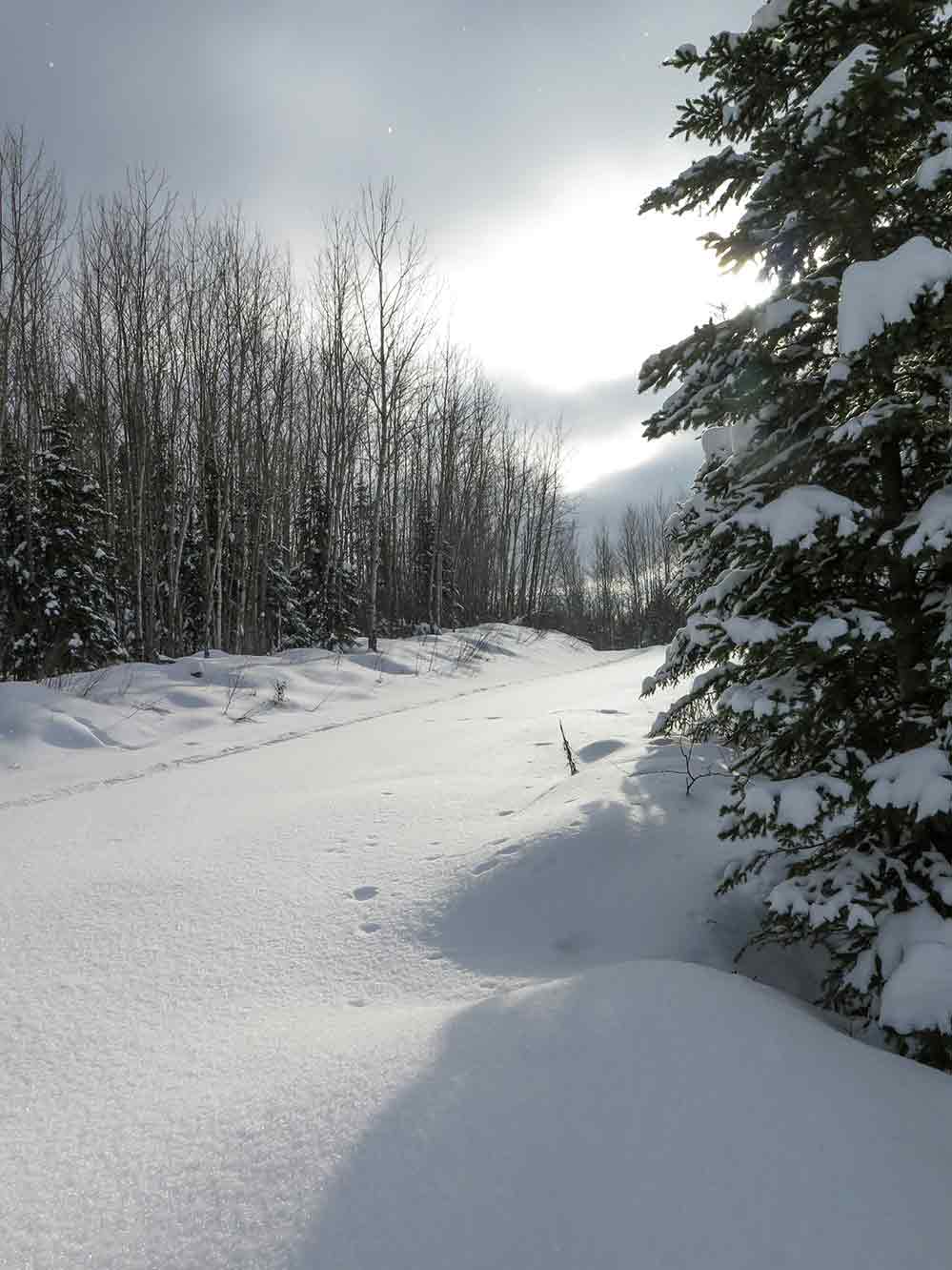 The day before it snowed the wind was blowing all over there may have been 15cm of snow. The next day it was still blowing all over, I started at Hedlund marsh west of town and headed for the lake. There was snowmobile trail right up to the lake which helped snowshoeing. Here are a few pics along the way.