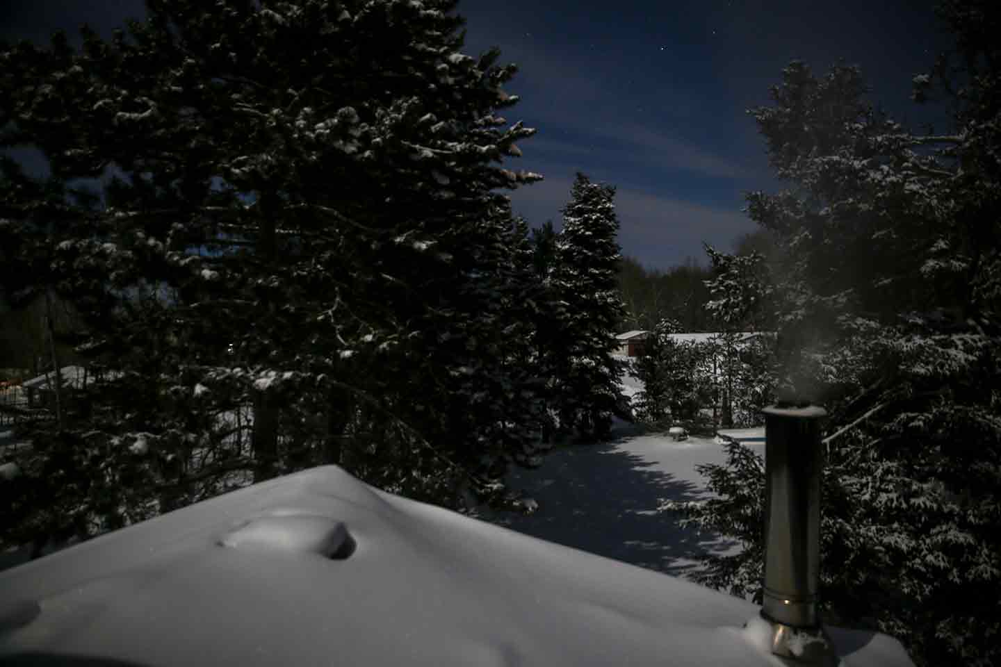 Just got back to Gowganda on the first of Jan. from Lindsay at my sisters. Good ride home. Weather has been cold -30C. Still cold 4 days later. The first pics are yesterday and 3 shots at 4:00 AM the big moon lit up the trees,