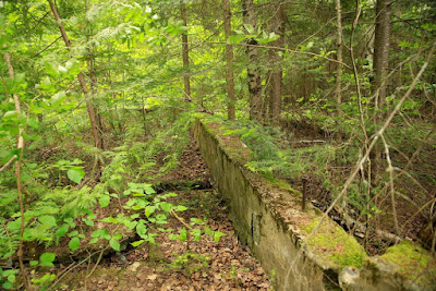Back in 1914 there was a power station at the top end of Burke Lake. The water from Gowganda Lake was carried by a wooden pipe 20" in diameter made of wooden staves and held together by steel rings. This provided electric power to the Miller Lake-O'Brien mine. Some of the remains of the concrete platform is still at the top end of Burke. Here are some pics and an old pic of the station.